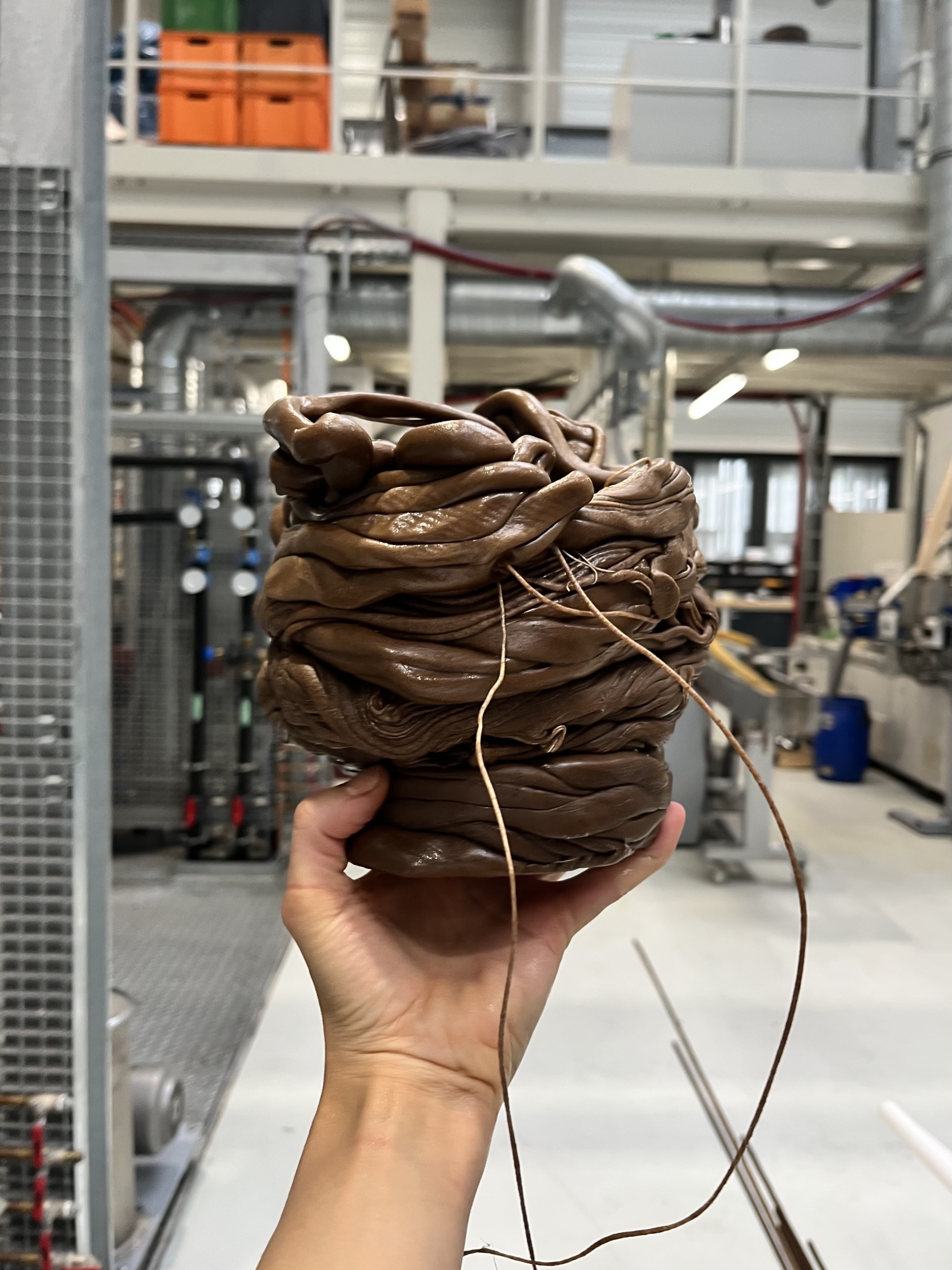 Im Zentrum stand das gemeinsame Forschen und Formen: manuelle 3D-Druck-Experimente mit dem neu entwickelten Filament, materialtechnische Erkundungen, ästhetische Proben – begleitet von Fragen zu Ethik, Ökologie und Kooperation.