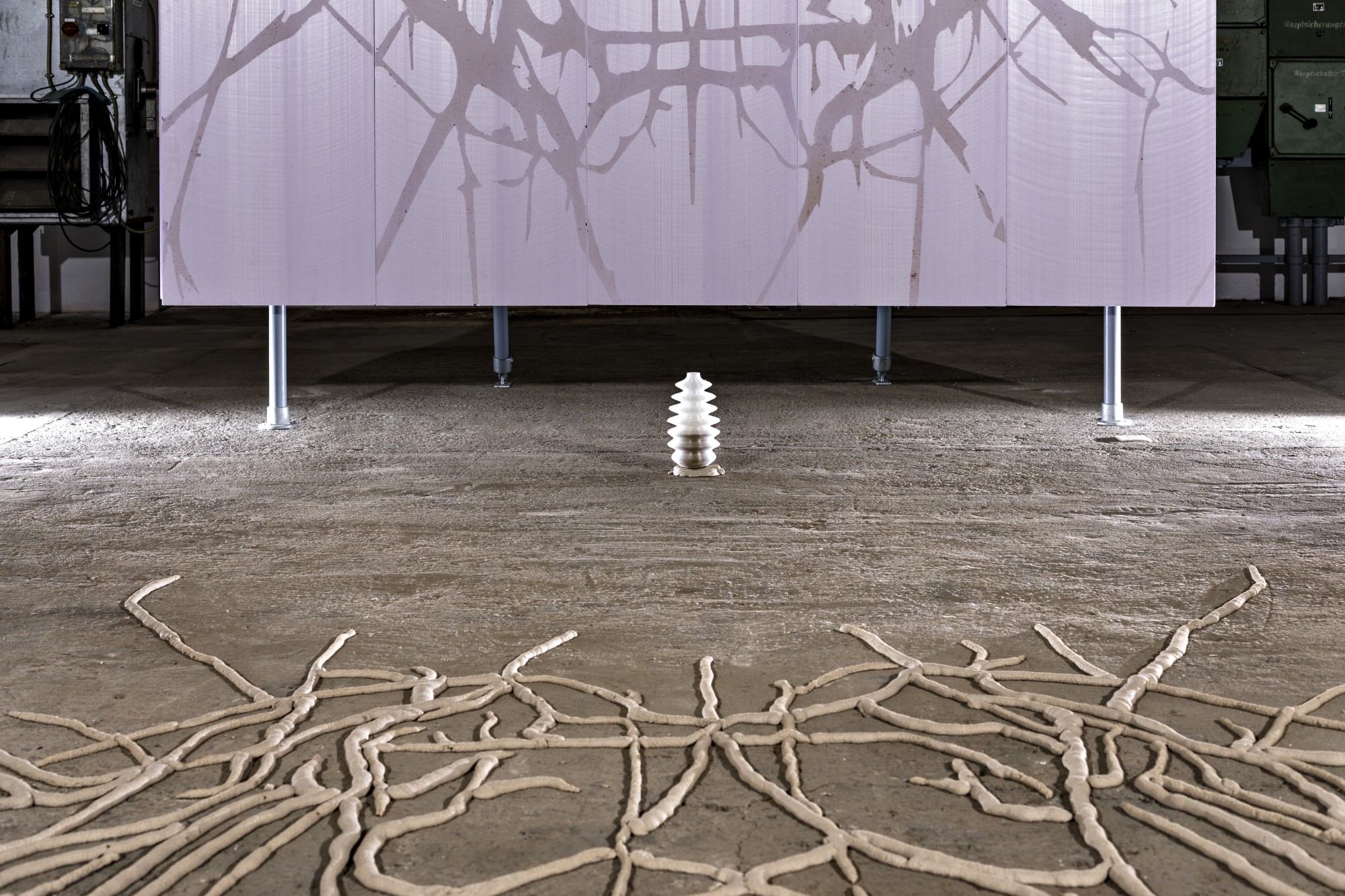 HYBRIS ist eine kunstbasierte Forschungsinitiative. Sie entwickelt eine prozesshafte Methode zur Umnutzung von Abfall in spekulative Materialsysteme, künstlerische Objekte und mögliche Baustoffe. Seit 2019 untersucht Yana Zschiedrich in diesem Rahmen das Potenzial von Mehlwürmern als skulpturale Kollaborateure, um expandiertes Polystyrol in biologisch verwertbare Substanzen zu transformieren. Daraus entstehen neue Materialansätze, die etwa Sand in nachhaltigen Architekturkonzepten ersetzen könnten.