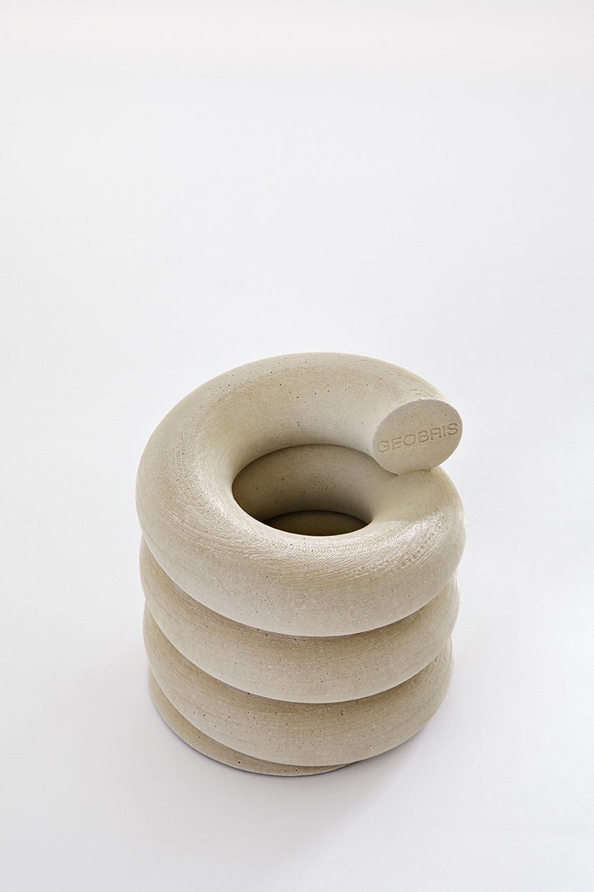 This cast worm biosolid is then treated in collaboration with the Fraunhofer Institute for Building Physics to develop Geobris, a geopolymer composite as durable as concrete yet environmentally friendly. Zschiedrich has even adapted it for 3D printing, producing architectural forms that demonstrate how art and ecology can coexist in innovative material practice.