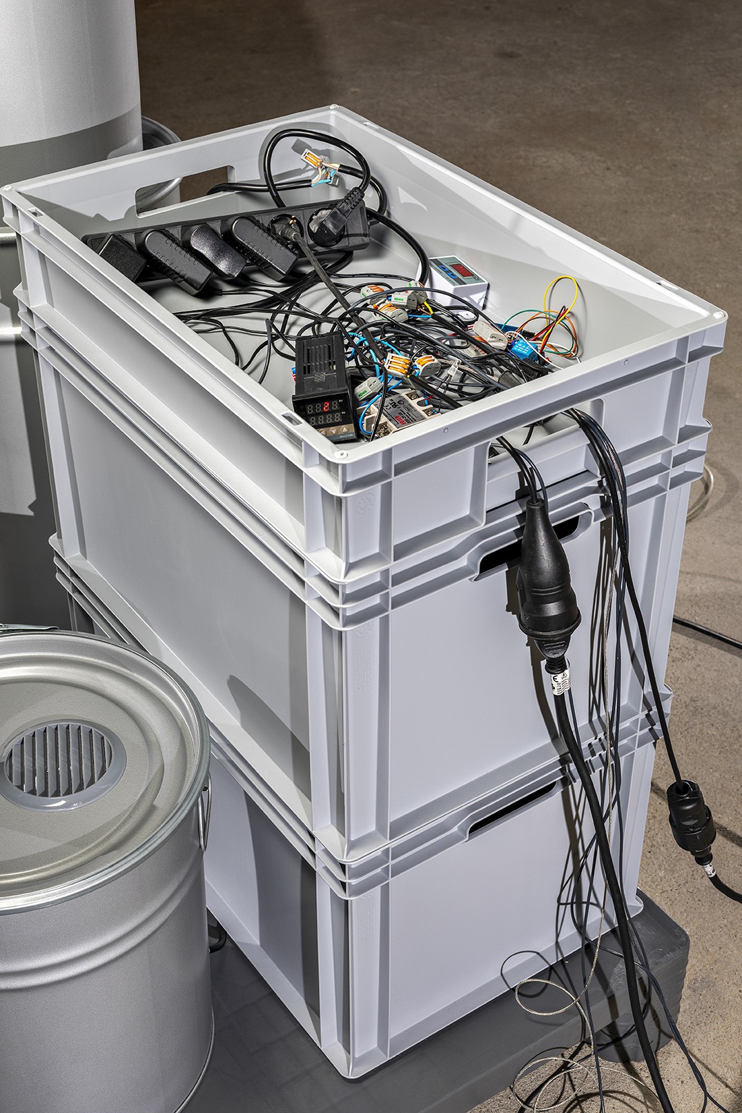Die funktionalen Einheiten der Anlage vermischen sich also immer mit den Bedingungen und den Handlungen der Mehlwürmer und der Künstlerin als eine Art Zeugnis der Gesamtbilanz. Das Gesamtsystem ist nie eindeutig, nie konstant, bleibt fragil, weil die sich verändernden Parameter es immer zwischen Kipppunkten pegeln lassen. Die Mehlwürmer bei HYBRIS reagieren höchst sensibel auf ihre Lebensbedingungen und entsprechend ergebnisoffen sind auch die Bilder, die sie ausfressen. Die Anlage ist die Welt der Mehlwürmer. Auch Künstler*innen reagieren wie Seismographen auf Veränderungen ihrer Welt.