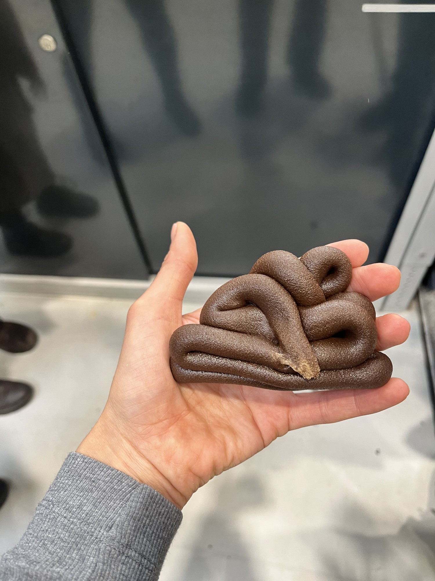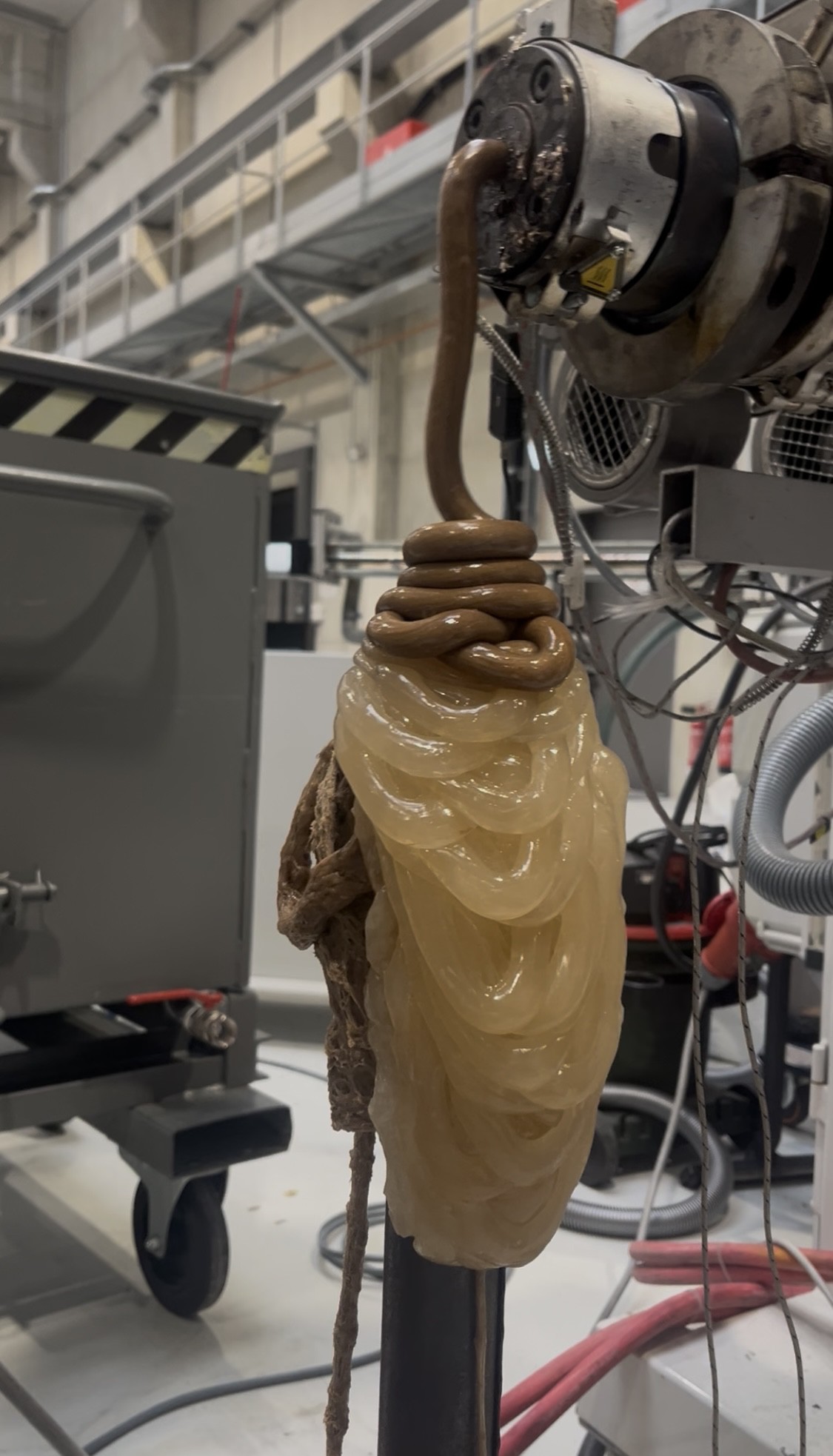 Im Zentrum stand das gemeinsame Forschen und Formen: manuelle 3D-Druck-Experimente mit dem neu entwickelten Filament, materialtechnische Erkundungen, ästhetische Proben – begleitet von Fragen zu Ethik, Ökologie und Kooperation.